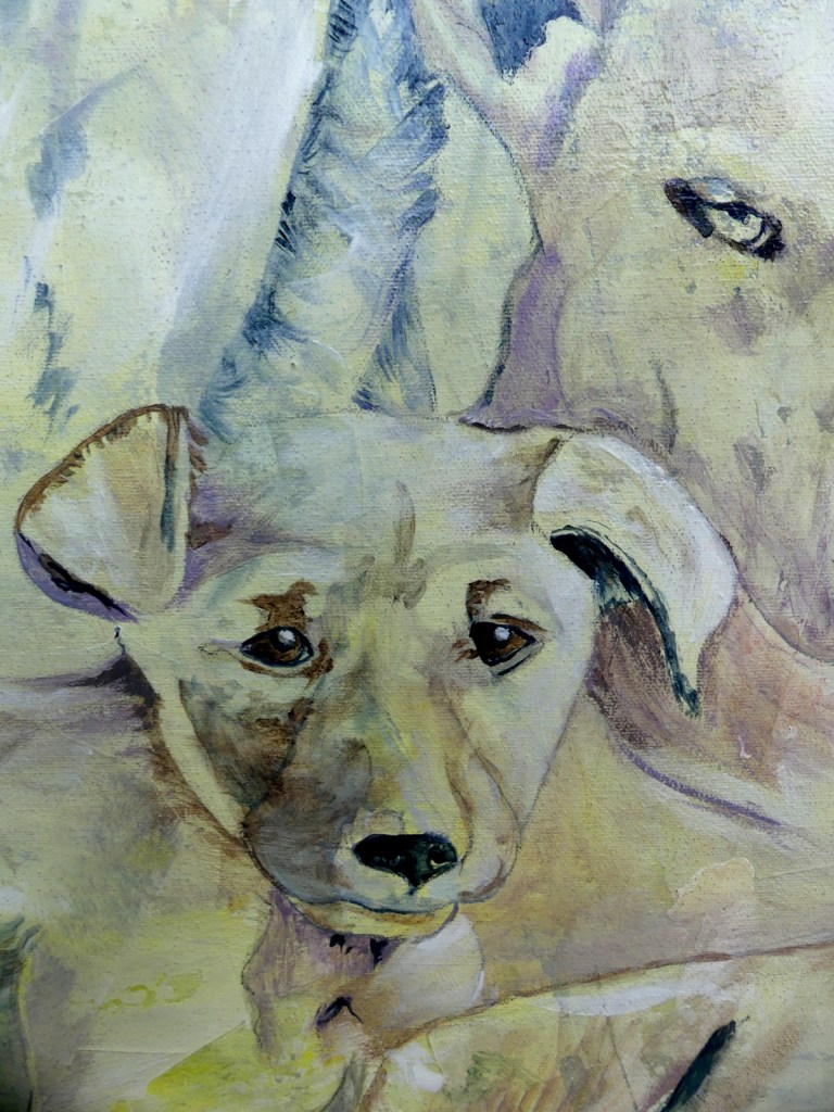 En fait, c’est cela. Le fait de peindre les animaux et surtout les chiens errants, me plonge dans l’univers des couleurs et de la lumière. Quand je rentre dans cet univers là, ma vie change, je sors de ma victimisation pour devenir aidante. C’est comme si par magie moi-même et tout ce qui m’entoure devenions couleurs et lumière, un état profond que je veux partager avec tout mon entourage. »