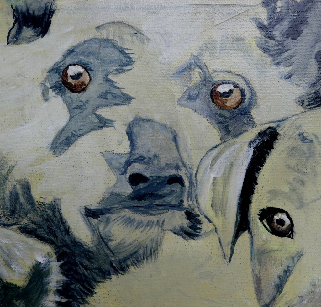 Je dessine toute sorte d’animaux, mais surtout ceux en détresse. Ce n’est pas difficile, malheureusement presque tous les animaux sont aujourd’hui en détresse ou en voie d’extinction. Je dessine surtout les chiens errants.