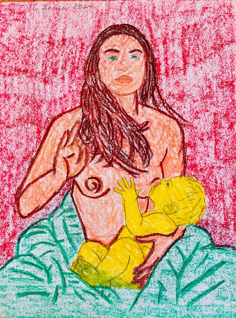 Une grande paix m’habite, je suis ancrée à la terre, je me sens stable. J’ai tous mes moyens. L’ABRI est né, une joie profonde m’envahit. Accroché à mon sein, il peut continuer de vivre et de s’épanouir, à part entière. Il respire de lui-même, portant le souffle de vie. Heureuse et comblée, je le nourris, l’aidant à grandir, suivant le mystère de la vie pour combler ses besoins. Je peux enfin montrer mes couleurs, non dans la controverse, la haine et la dualité, mais plutôt dans l’amour, la réconciliation, l’union. J’ai tout en moi pour nourrir cet enfant, avec un immense soutien tout autour de moi, tout un village à ma portée. J’allaite tout en restant fidèle à moi-même. Ce projet m’offre beaucoup, me nourrissant à son tour. Ma guérison est complète.