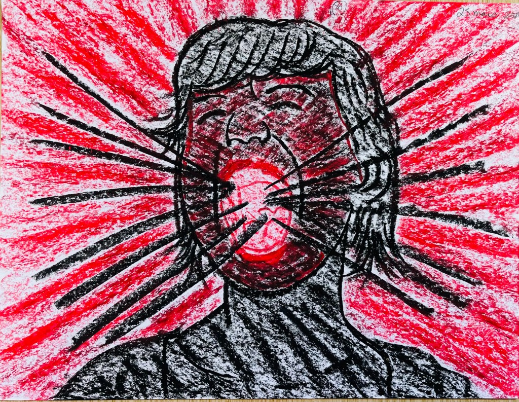 C’est quoi mon trou : le silence, le noir, le cachot, la volte, le truc barré à triple tour, le donjon, l’interdit. La révolte se fait sentir en moi. Je ne veux pas la montrer sur mon dessin, je l’exprime en mots. Me vois-tu maintenant ! Est-ce que mes maux te blessent ? Je ne peux plus garder ce volcan en moi. Je me dis, je suis !