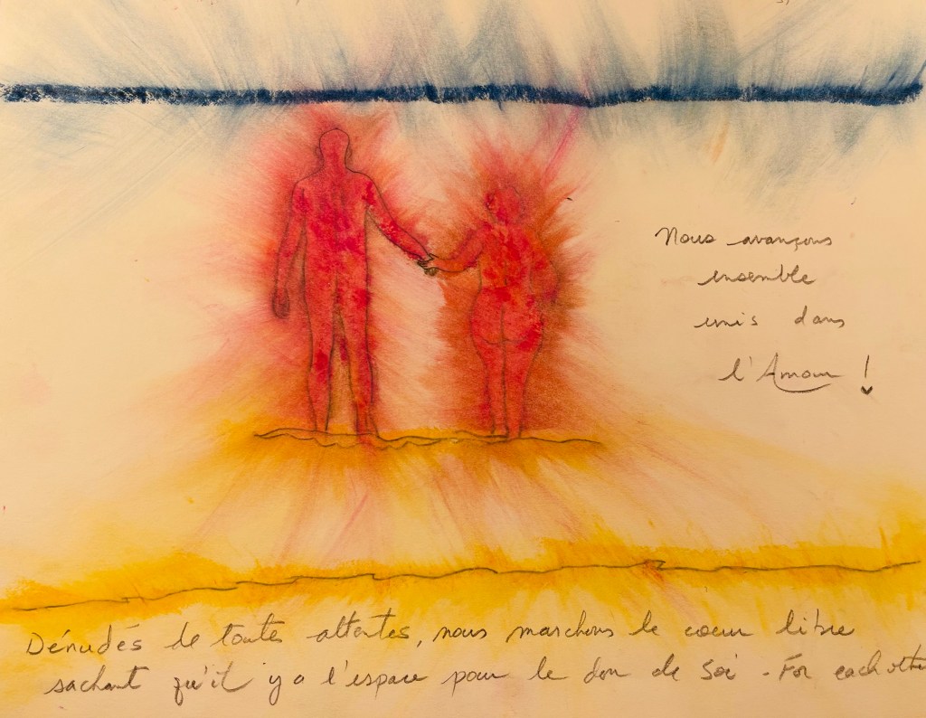 Je t’aime et je suis avec toi, je te tends et je te tiens la main, nous marchons ensemble, en harmonie, bien en vie, bien vivantes.